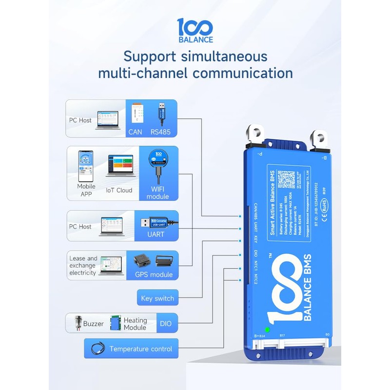 - Enhanced Battery Safety: DALY active balance BMS offers protection against overcharging, overdischarging, overcurrent, short circuits and extreme temperatures, ensuring the safety and longevity of the battery pack.