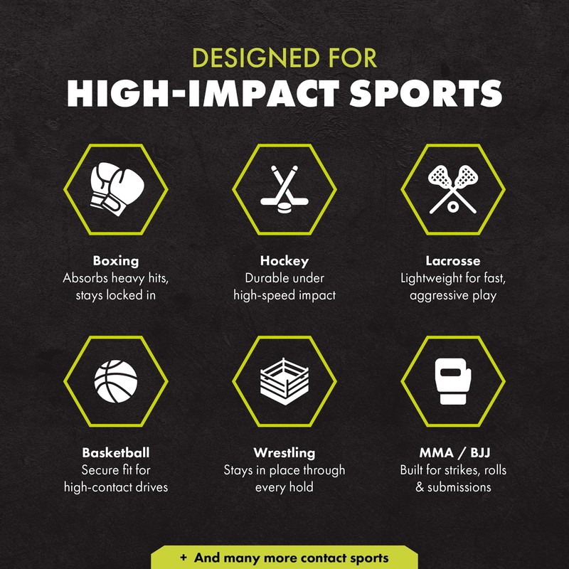 - IDEAL FOR CONTACT SPORTS - Focus on being the best at your game with Damage Control. Protect your jaw in lacrosse, boxing, roller derby, hockey, basketball, BJJ or weight lifting. It's suitable for any contact sports you play!