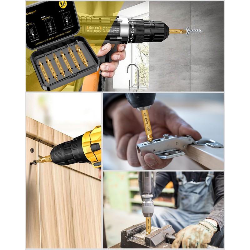 Damaged Screw Extractor Set- 6 psc HSS 6542 Stripped Screw Removal Tool, Stripped Screws Nuts & Bolts Drill Bit Tools for Easy Removal of Rusty & Broken Bolt Extractor Kit, Christmas Gifts for Man