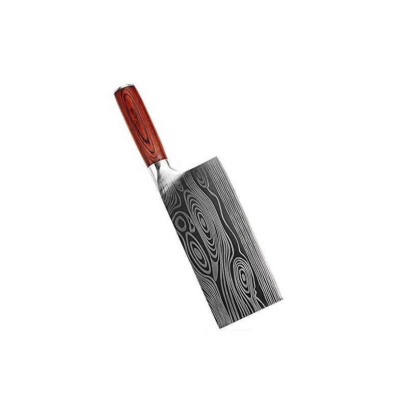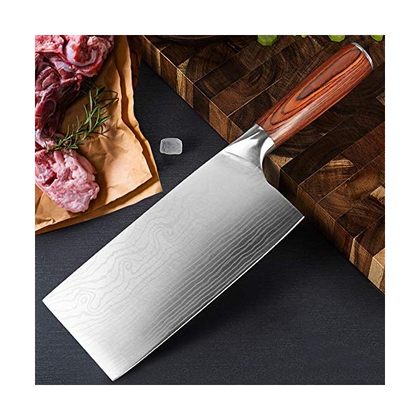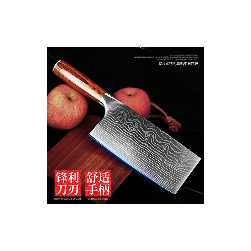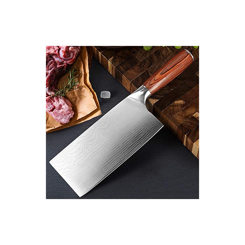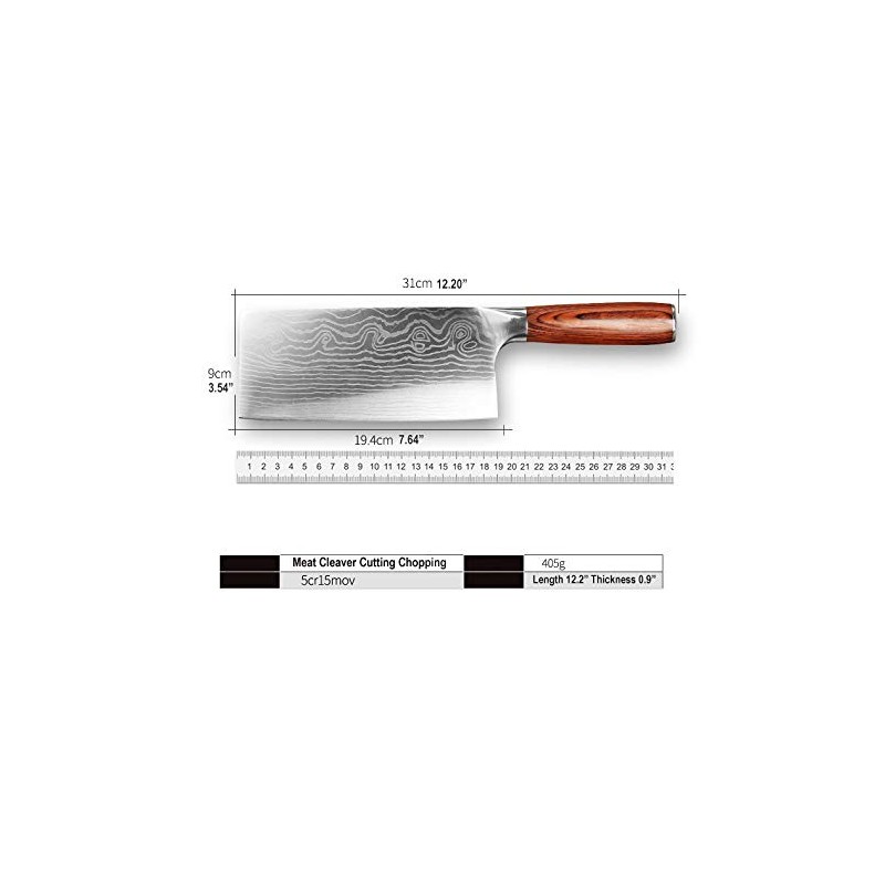 • PREMIUM AUS-10 HIGH CARBON STEEL BLADE : Sandwiched with 66 layers of softer steel, Features a high level of rust-resistance and long-lasting performance which featuring a lasered stunning pattern on the blade. The steel is precisely processed with vacuum heat treatment and nitrogen cooling treatment, reaching the high hardness at 62+/-2 HRC and great edge retention.