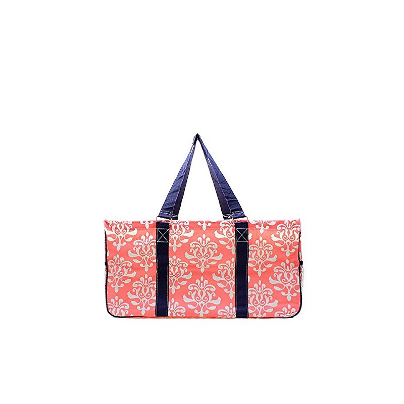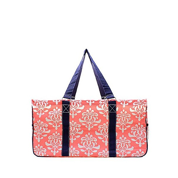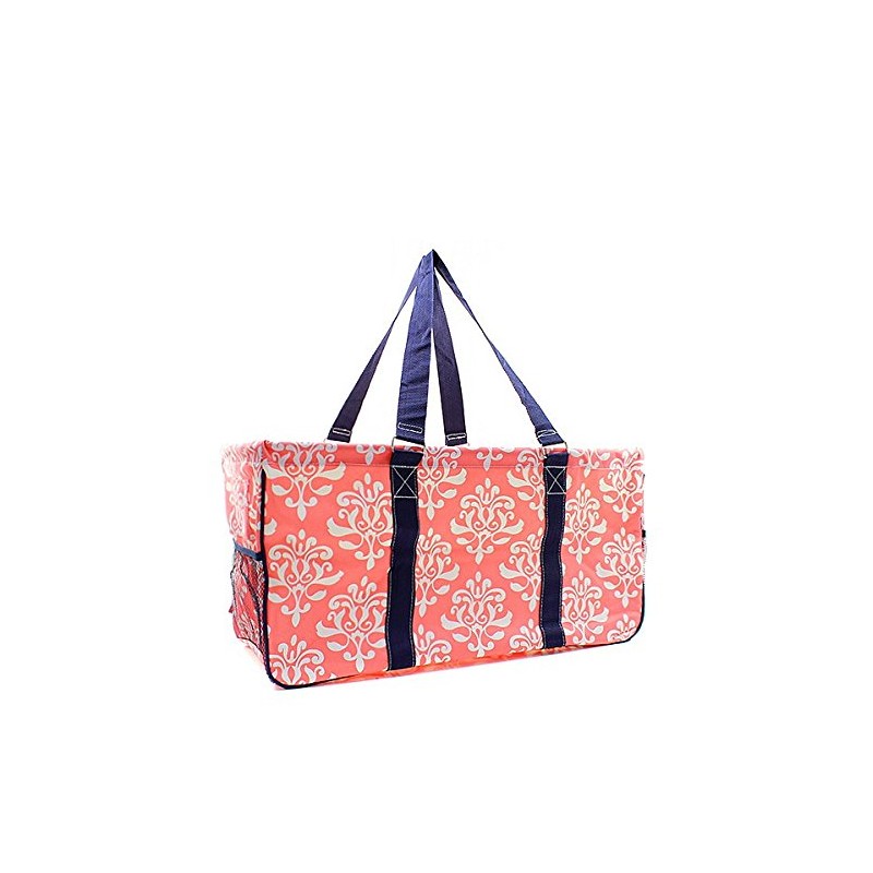 Damask Floral All Purpose Large Utility Bag Collapsible Wire Frame Pink Coral