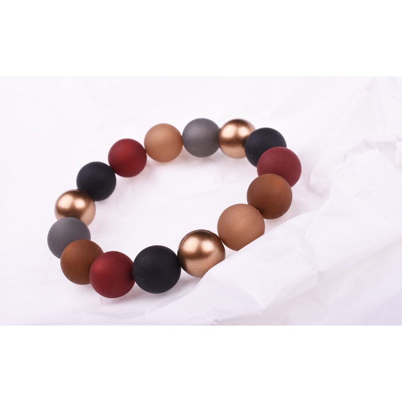 Damenarmband "Magdalena", original Polarisperlen und Akzenten aus metallic lackierten Acrylperlen, handgefertigt von Adi-Modeschmuck in Berlin (rot/braun/grau)
