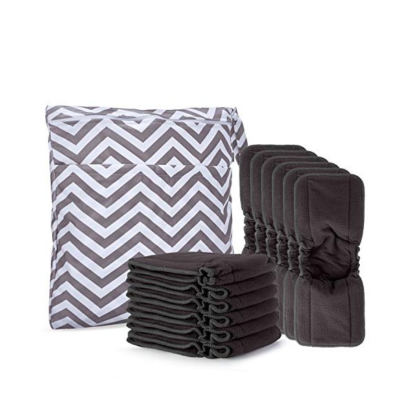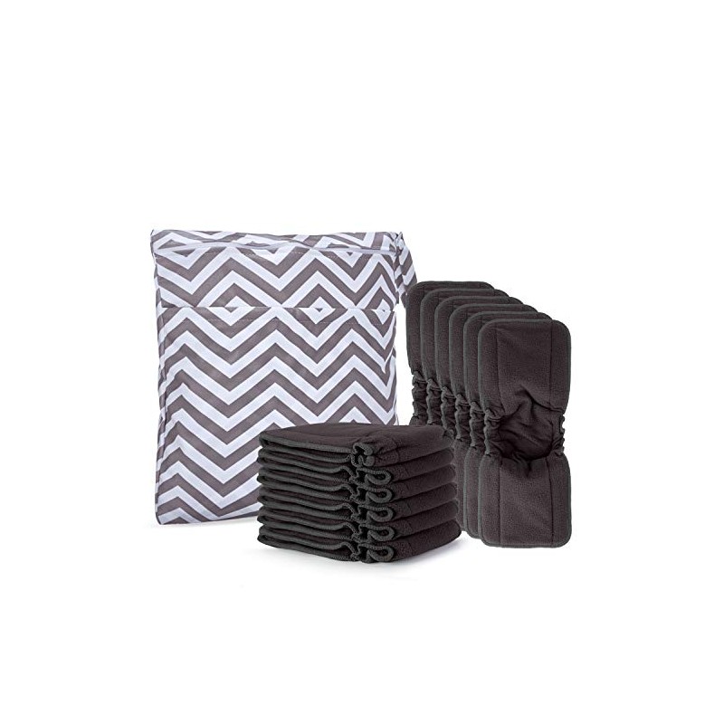 Damero 5-Layer Charcoal Bamboo Reusable Diapers Baby Inserts with Gussets, 12PCS Cloth Diaper Inserts with an Extra Storage Bag