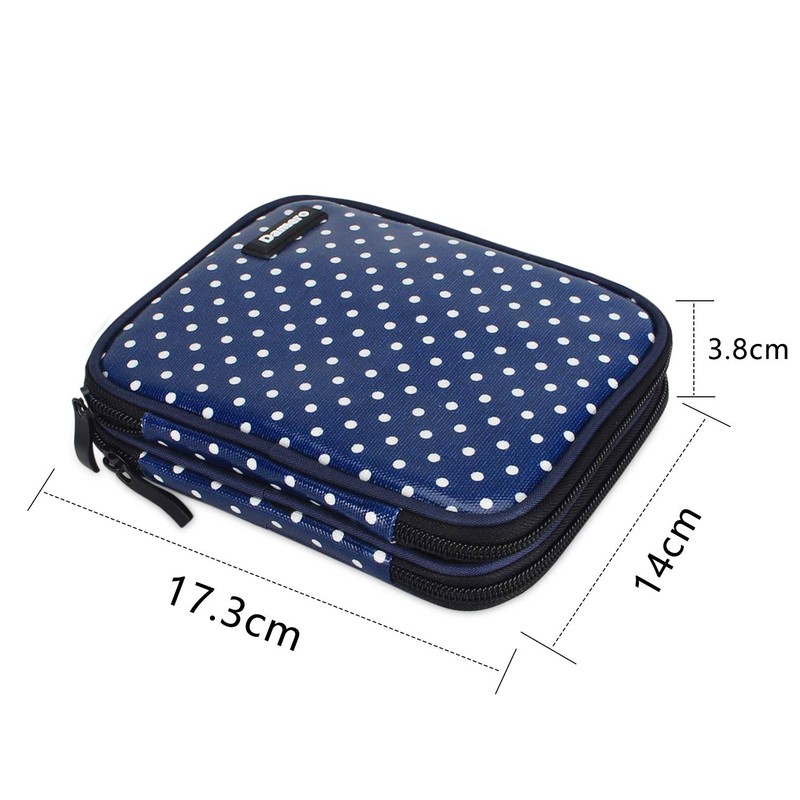 Damero Affordable Crochet Storage Case, Double Layer Crochet Set, Crochet Accessories, Craft Tools, Writing Instruments, Storing Portable Cute Gift (Needles Not Included) Dark Blue Dot