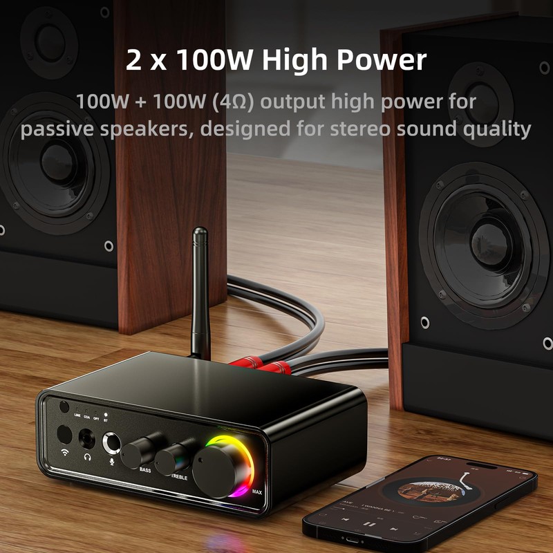 - Multiple Input & Output Methods: - DAMGOO amplifier supports Bluetooth 5.3, RCA, Optical, Coaxial .Mic input allow for a wide range of devices to be connected to the amplifier board, including smartphones, laptops, tablets, and other audio sources.