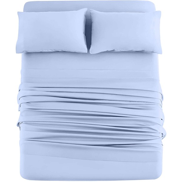 DAN RIVER Jersey Knit Sheets - All Season, Soft, Cozy California King Jersey Sheets. T-Shirt Sheets. Jersey Cotton Sheets. 4 Piece Heather Cotton Jersey Bed Sheet Set. (California King, Light Blue)