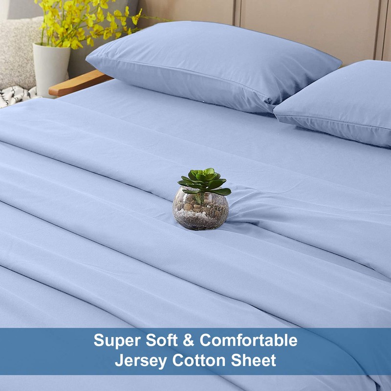 - LIGHTWEIGHT JERSEY KNIT COTTON - Slip into luxury with exceptionally smooth and super soft to the touch bed sheets. Our jersey bedding set is very comfortable and it feels as cozy as sleeping with your favorite t-shirt. The sheets are incredibly soft and long lasting, making a great choice for any bed.