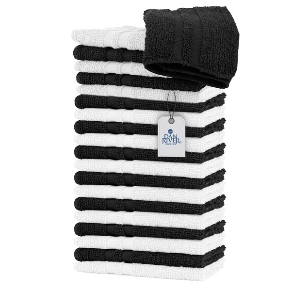 DAN RIVER - Paños 100% algodón, paquete de 20 paños faciales y corporales de alta calidad, toallas esenciales de secado rápido para baño, manos, cocina y limpieza, 12 x 12 pulgadas, 400 g/m², gris + blanco