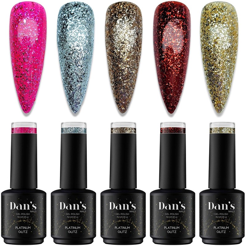 • đź’… DAN'S PLATINUM GLITZ GEL POLISH: The glitter nail polish makes your nails glimmer and reflects a glossy and glistening look. Platinum Glitter Gel is a popular gel polish effect because of its unique colors and platinum glitters on it. The long-lasting glitter nail polish with good tenacity will maintain your nails bright and eye-catching. The platinum glitz effect and sparkle will take your manicure to the next level!