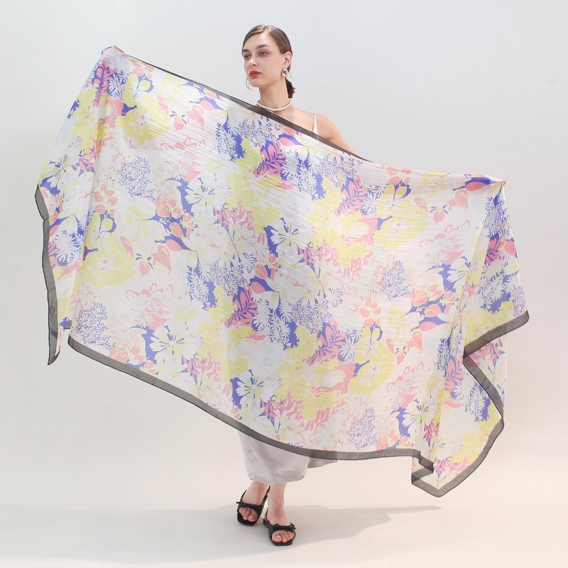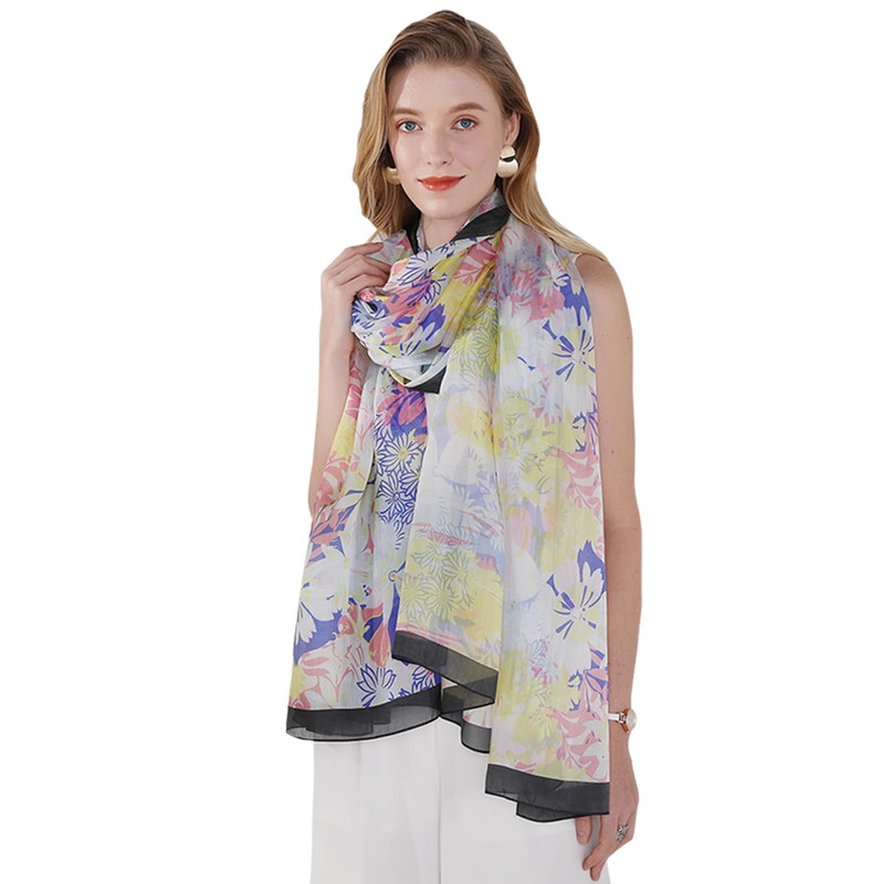 DANA XU 100% Mulberry Extra Large Silk Pashmina Scarf Shawls And Wraps For Women Evening Dress Summer Travel Floral Blanket
