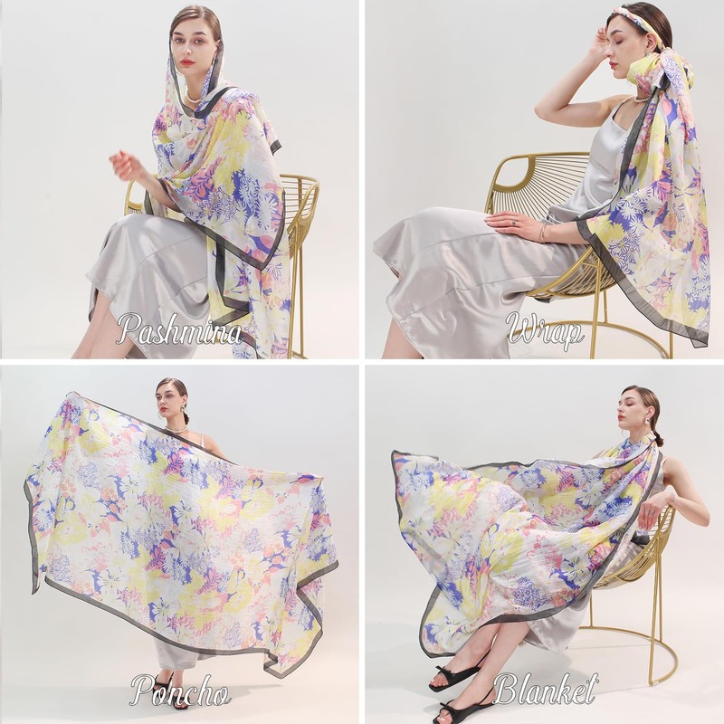 - LUXURIOUS WRAPS SHAWLS FOR WOMEN: 100% mulberry silk, natural fiber, 90*43 inches, two times larger than regular shawl, less than 2 oz lightweight. Ideal shawls for women who value comfort and beauty. Perfect for parties, weddings, travel or as an amazing gift.