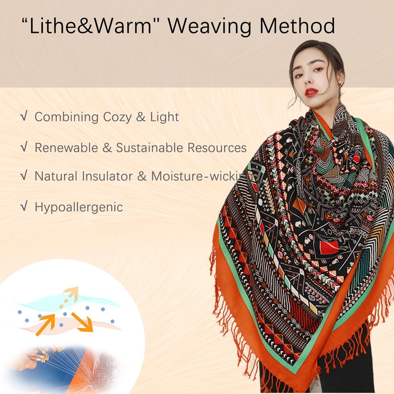 - Luxurious Pure Wool Shawl for Women: 100% Merino wool for pashmina wraps, delicate soft& smooth touching. 96X43 inches with handmade tassel, two times larger than regular shawl, cozy as blanket, lightweight less than 11oz. Perfect for travel, on vacation, party or as an amazing gift.