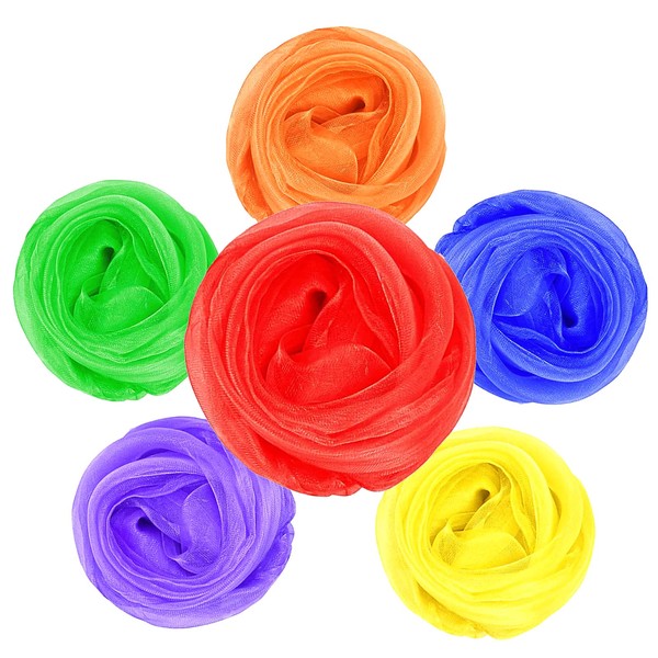 Dance Towels, 6 Pieces Multi-Colour Silk Scarves, Dance Juggling Scarves, Square Juggling Cloths for Dancing, Juggling and Sensory 60 x 60 cm