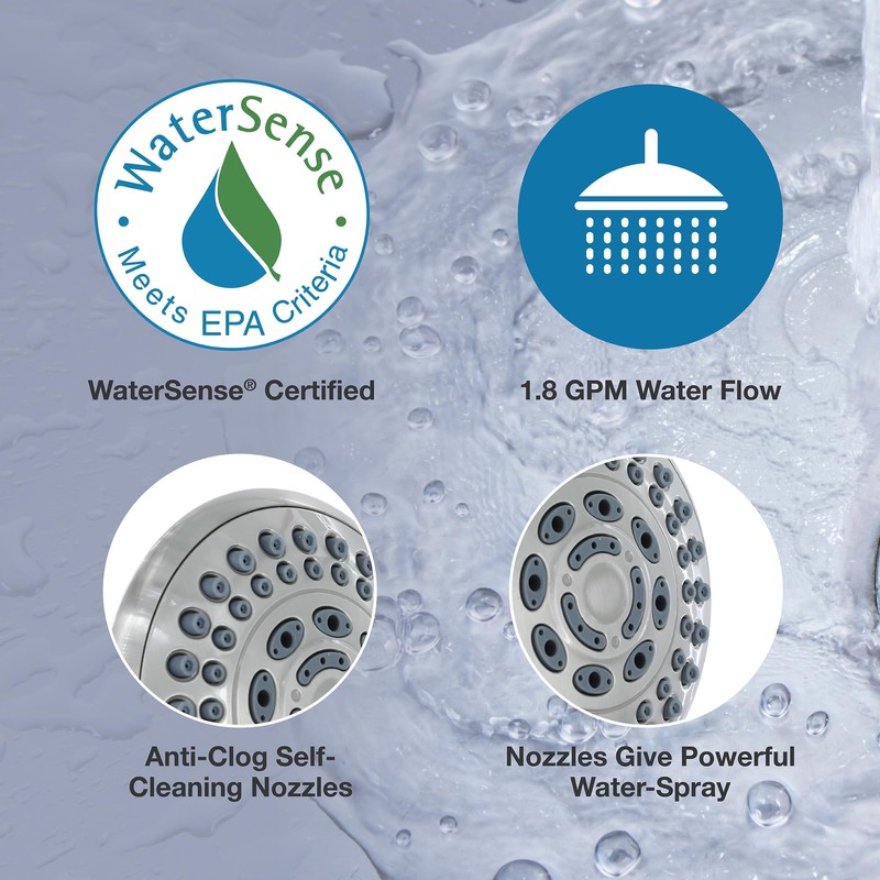 Danco 1.8GPM 5-Spray Water-Saving Luxury Shower Head with Adjustable Swivel B...