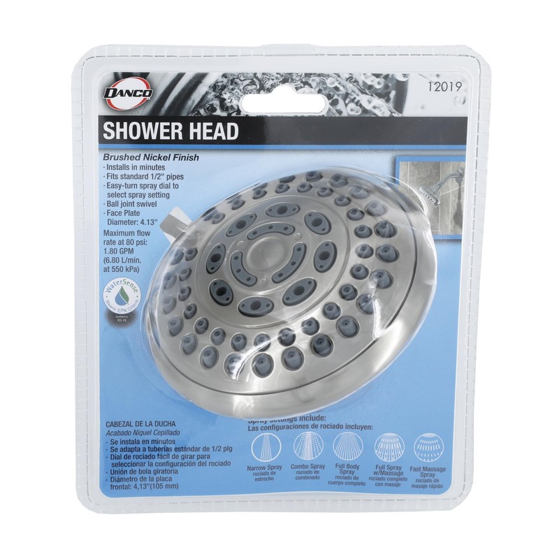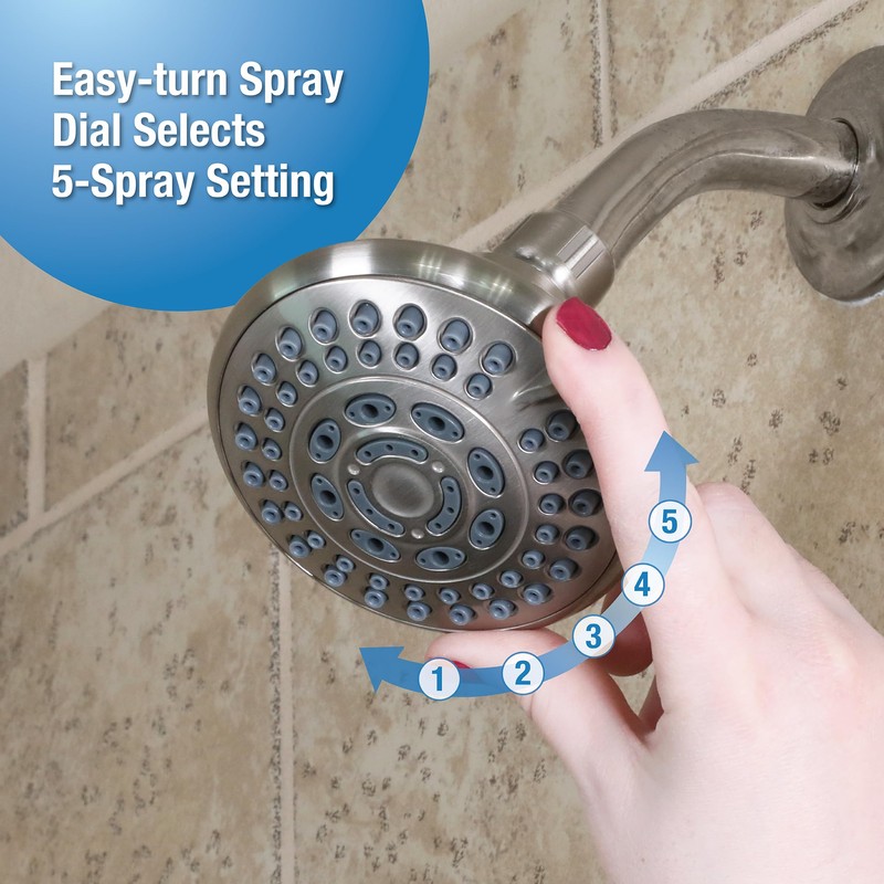 Danco 1.8GPM 5-Spray Water-Saving Luxury Shower Head with Adjustable Swivel Ball Joint in Brushed Nickel (12019)