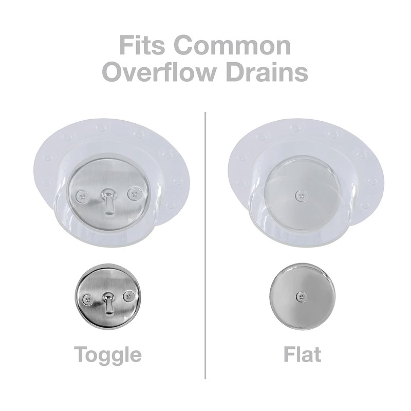 - FITS MOST OVERFLOW DRAIN FACEPLATES: Measures 6.25 inches in overall diameter and 1-1/8 inch deep, the tub overflow cover will fit over most commonly found bathtub overflow drains, like trip/toggle lever, flat, or snap drain faceplate types.