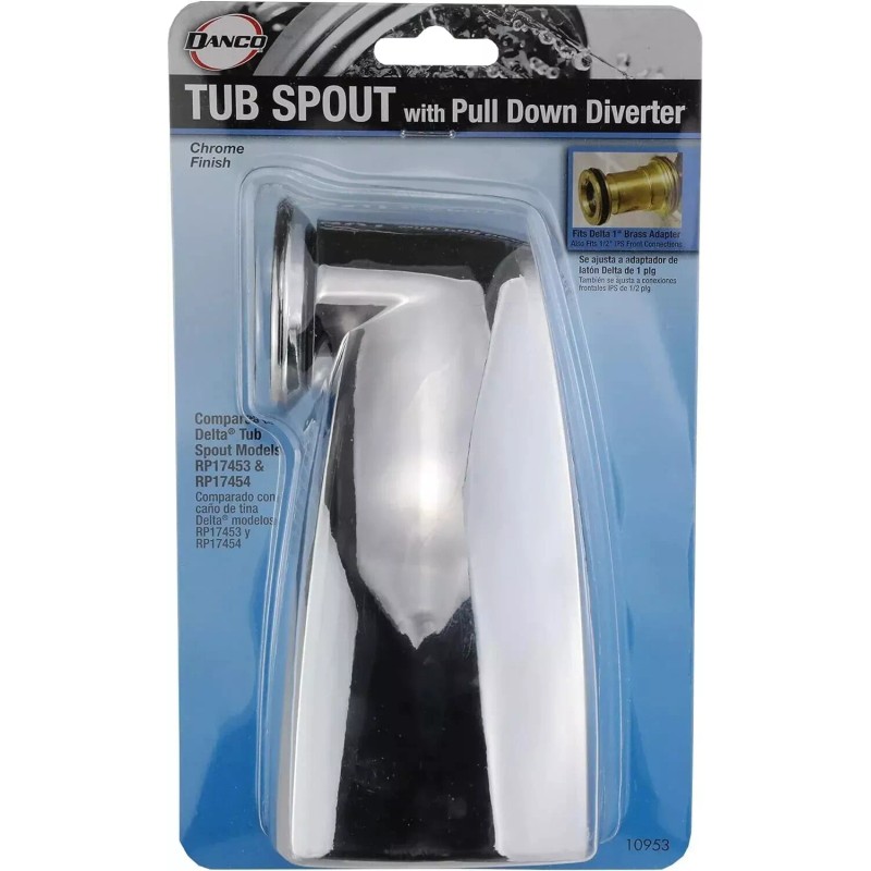 Update your bathroom with the Danco Pull-down Diverter Tub Spout for Delta. This simple DIY project will allow you to add a new style to your bath or replace an older tub spout that no longer works. Eliminate erosion, prevent unwanted cracks and save money with this quick update. This bathtub spout is constructed from metal for strength and durability in your tub and shower. The bath diverter spout is compatible with 1/2 IPS front connection and will also fit Delta 1 In. brass tub spout adapters OEM# RP 12307 and RP33794. This Delta Pull-Down Diverter Tub Spout in Chrome features a 6 In. spout reach and gives a sharp tailored look in your bathroom