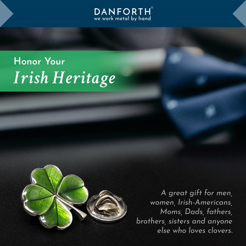 • Danforth Clover Lapel Pin: A beautiful green lapel pin handmade to represent a four-leaf clover; Crafted from high-quality pewter metal with a clutch back closure; Great costume accessory for St. Patrick's Day