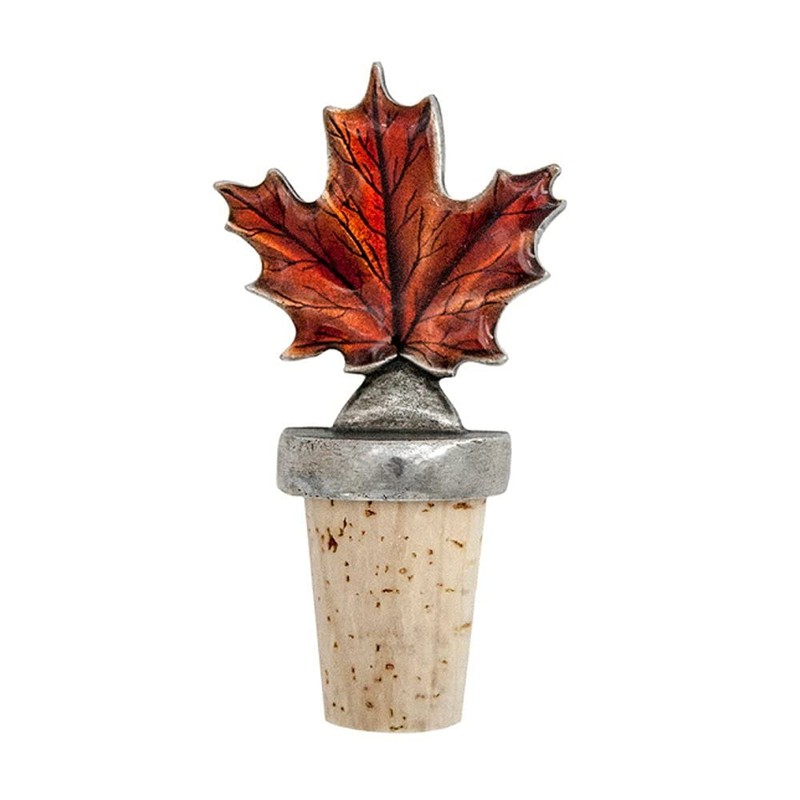Danforth Maple Leaf Fall/Autumn Bottle Stopper, Pewter, Natural Cork - Handcrafted, Made In USA