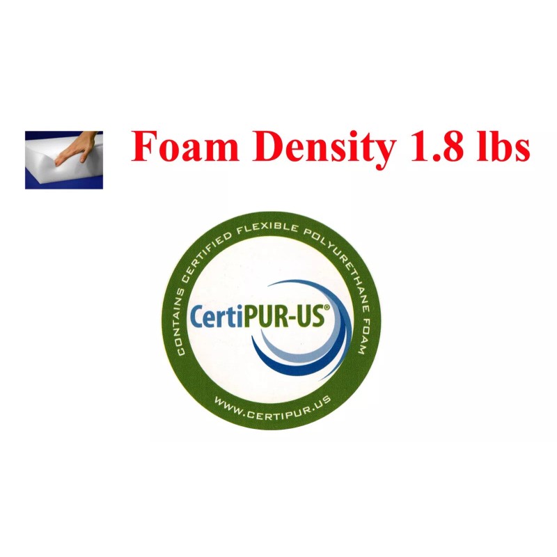 - Filled with white foam - CertiPUR-US, high density 1.8 pounds per cubic foot.