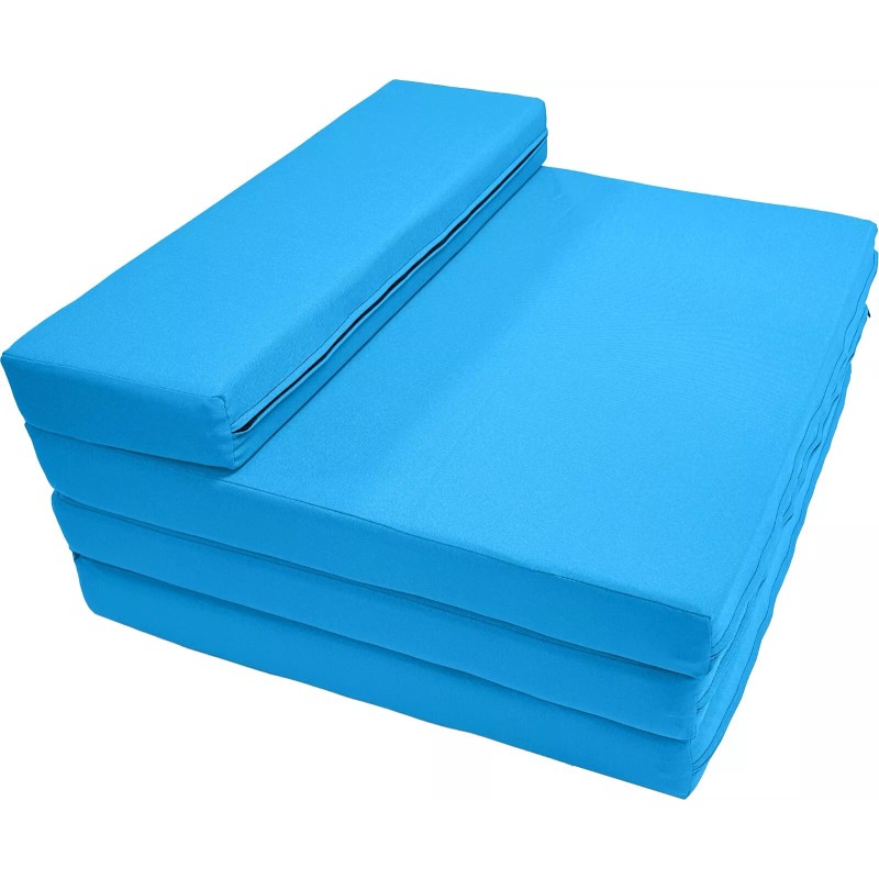 This trifold foam bed is made of a high density white foam 1.8 Pounds Per Cubic Foot in order to increase the foam life, more durable and resilient while using. It is easily to keep this foam bed in a closet, storage, a car or a van. When using, just simply fold out this foam bed right on the floor to sleep on, it makes for an efficient use for any small living space and easily to move around the house or to travel. It is an ideal to have this foam bed for family reunion, picnics, sleepover guests, students, children playing games, camping, traveling, taking a nap, massage, yoga meditation, exercise .... This trifold foam bed is known as a shikibuton, it is foldable and portable, conveniently used and placed in a guestroom, living room, bedroom, family room, office, garage, dining room, playroom, nursery room, exercise room, patio, studio, dormitory, mobile home, camper, traveler, trailer, RV, workspace, van, truck and also bring it along in your car to anywhere. Being folded into the different positions, this folding foam bed is able known as the following functions like folding mattress, floor bed, tatami, ottoman, shikibuton, trifold foam bed, mat, couch, chair, or RV mattress, good to sleep, sit, rest, nap, play, relax, travel and camp.  It is perfect to use these tri folded foam beds for multi users such as students, adults, kids, teens, sleepovers, guests, friends, children, travelers, campers, visitors, boys or girls.