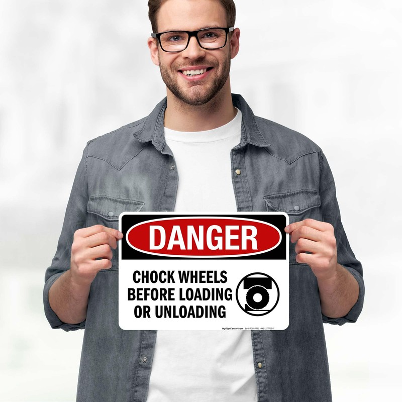Danger Chock Wheels Before Loading or Unloading OSHA Sign, 10x7 Inches, 4 Mil Vinyl Decal Stickers Weather Resistant, Made in USA by My Sign Center