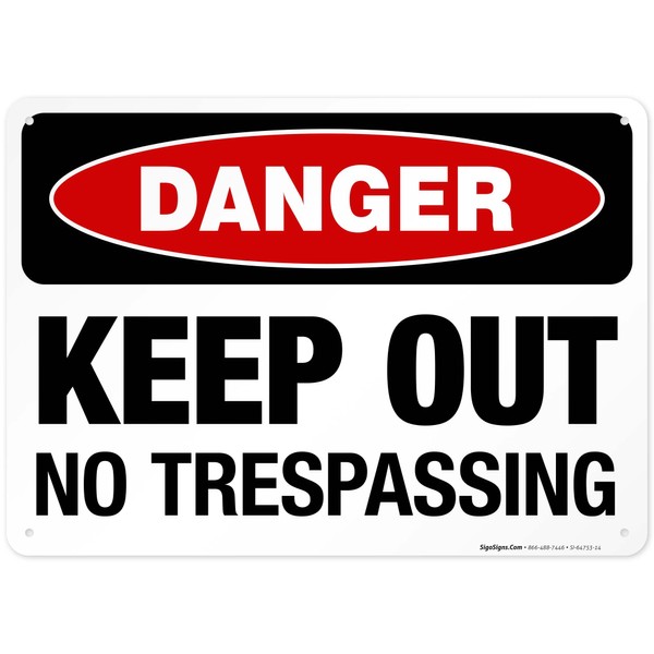 Danger Keep Out No Trespassing Sign, 10x14 Inches, Rust Free .040 Aluminum, Fade Resistant, Made in USA