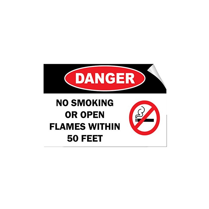 Danger No Smoking Or Open Flames Within 50 Feet Hazard Label Decal Sticker 7 Inches X 5 Inches