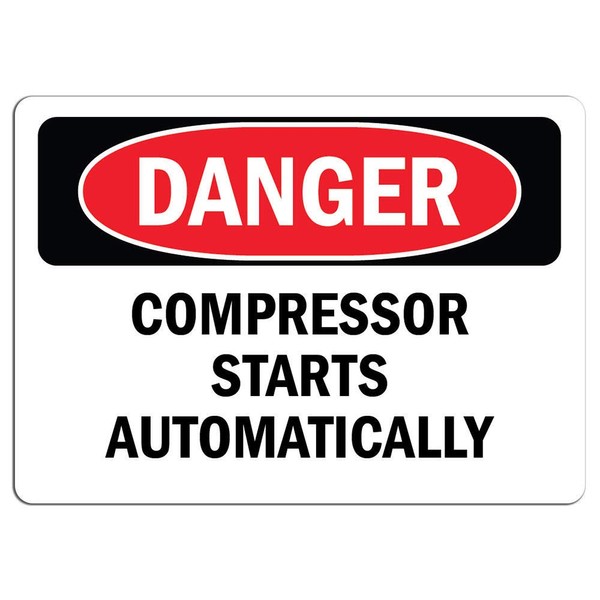 Danger Sign - Compressor Starts Automatically | Label Decal Sticker Retail Store Sign Sticks to Any Surface 8"