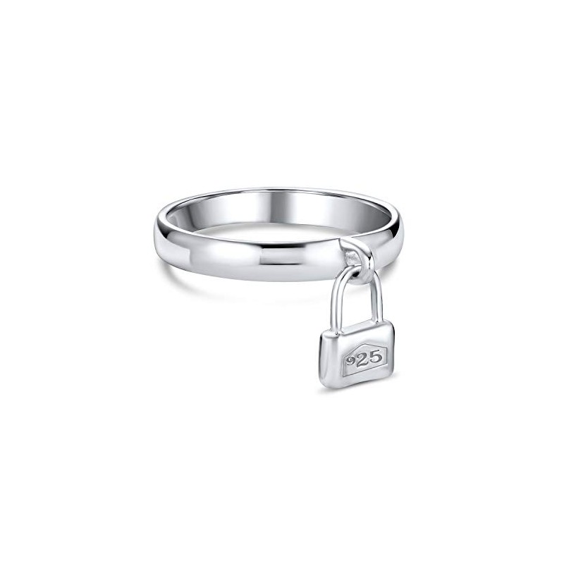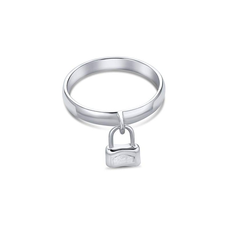 Dangle Charm Pad Lock Ring For Women Girlfriend .925 Sterling Silver Polished 1MM Band