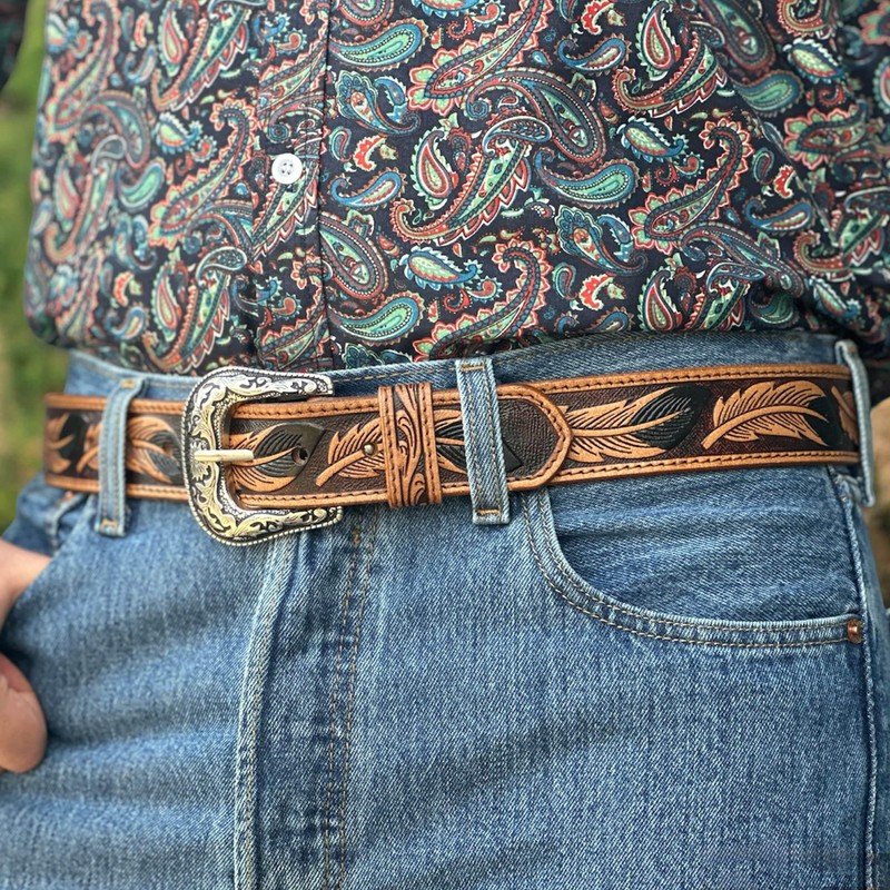 - Texture: The leather's surface is embossed with a floral tooled pattern, it is soft to the touch yet it retains a natural grain, adding to the western belt’s visual appeal and authenticity.