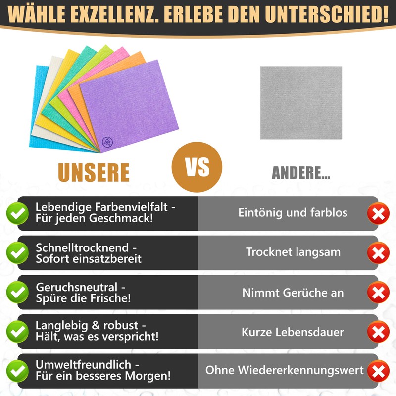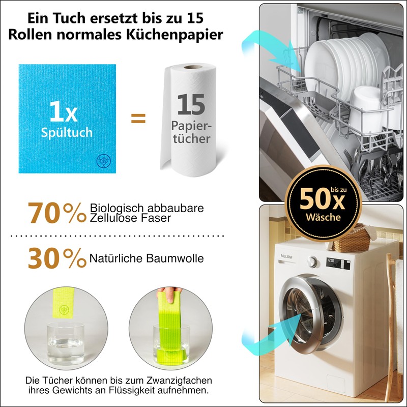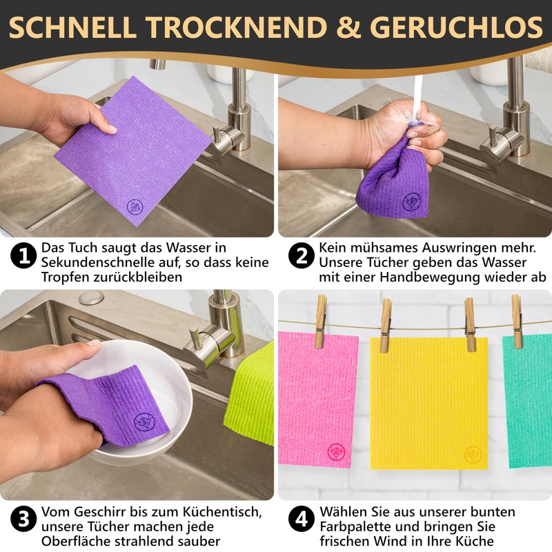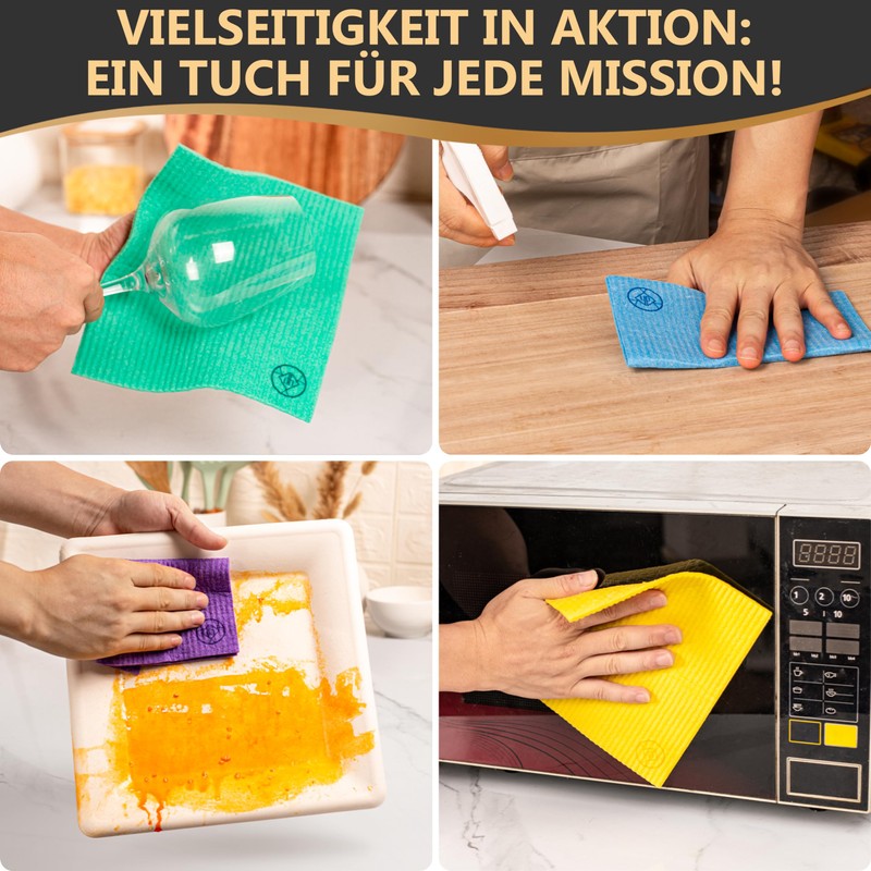 - Forget about conventional cleaning agents: these sponge cloths are so absorbent that they outshine conventional cleaning cloths and wipes. Each rag becomes a high-end cleaning tool, perfect for kitchen, car and other surfaces