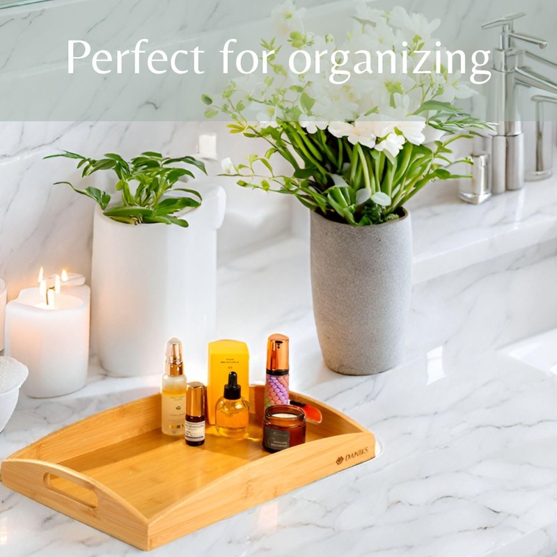 Daniks Bamboo Serving Tray | Wooden Breakfast Tray with Handles | Ideal for Great for Dinner, Tea, Bar | Food Bed Tray