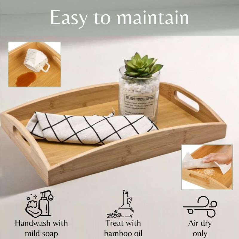 - 🛠️【HASSLE-FREE MAINTAINCE】Cleaning up is a breeze with our serving tray. Simply hand wash with mild soap, avoid soaking, and let it air dry. Maintain its natural beauty by treating it occasionally with bamboo oil, ensuring long-lasting use.