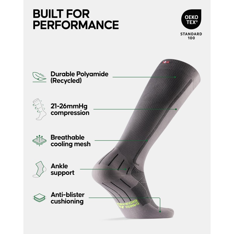 - 21-26 mmHg COMPRESSION: Tested with leading Swiss MST IV Technology, our technical socks increase oxygen flow and blood circulation. This aides muscle recovery and increases your performance