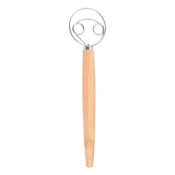 Danish Whisk, 13 Inch Danish Dough Whisk, Stainless Steel Double Holes Bread Mixer with Wooden Handle, Bread Dough, Whisk, Bread, Baking Accessories for Pastries, Desserts, Pizza Dough