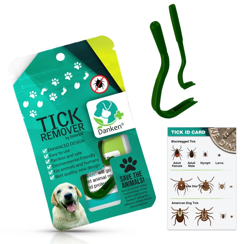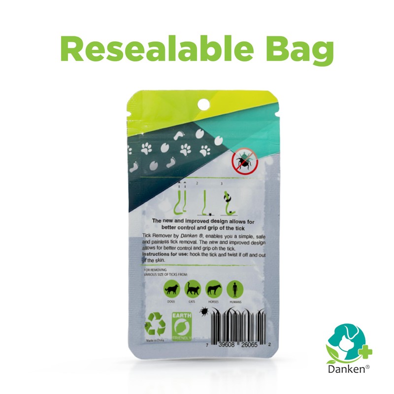 Danken® Tick Remover Tool for Dogs, Cats, Horses, and Humans | Enhanced Design | Tick Grabber | Tick Puller | Tick Tweezer | Safe & Easy Tick Removal | 2-Pack with Resealable Bag