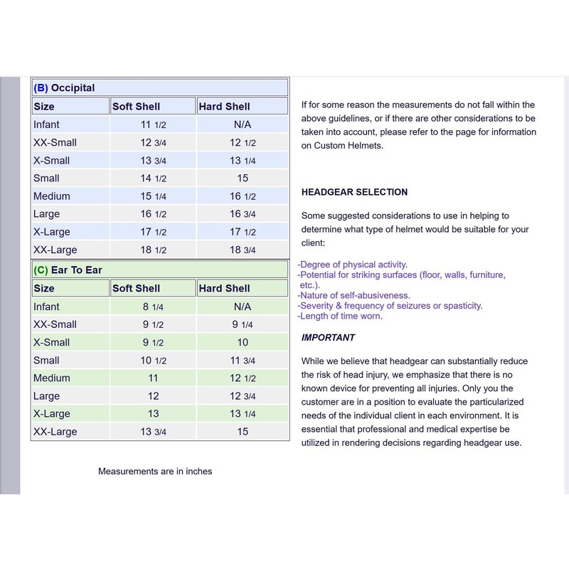 - Medical helmet sizes range from children to adult