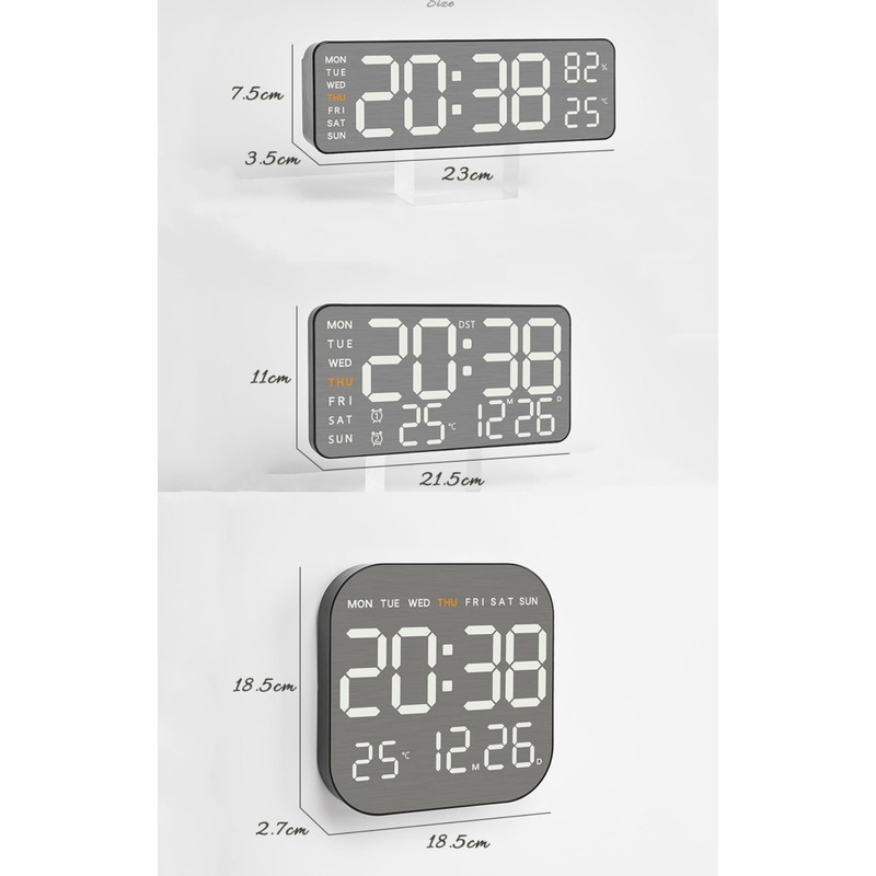 - 【Alarm Clock Body】Small rectangular 9.1 x 3.5 x 1.4 inches (23 x 7.5 x 3.5 cm), Large rectangular 8.3 x 4.3 x 1.1 inches (21 x 11 x 2.7 cm), Square 7.3 x 7.1 inches (18.5 x 18.5 cm), Material: Plastic/2 cm), Fashionable 2 x 2 x 2 x 2 cm), Metal Matte dial, fashionable two colors matte dial with high resolution, providing a more advanced appearance while maintaining a high resolution. Comes with a hanging hole on the back for use as a stand or for hanging
