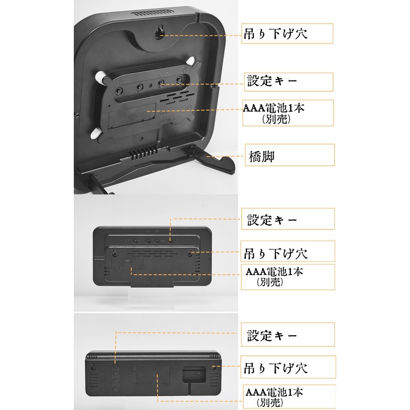 - [Precautions] 1. The back of the alarm clock requires 7 batteries. The battery has memory storage function, so there is no need to reset the power. 2. The alarm clock is powered by plugging the USB cable and power adapter into an outlet (power adapter sold separately)