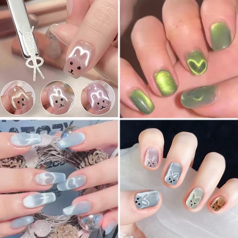 - Package Content: You will receive 1pc 3-in-1 cat eye magnets, 2pcs magnet stick, 4pcs Y-shaped guide tip for heart, 4pcs rabbit-shaped guide tip for rabbit, You can use them by different position or different distance from nails, you can get different charming 3D cat eye designs, That is a great nail art tool for both beginners or professionals