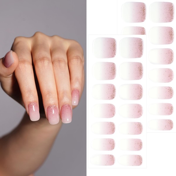DANNI & TONI Gel Nail Strips Semi Cured Pearl Pink(Pale Glint)with Gold Glitter Manicure UV 28 Stickers
