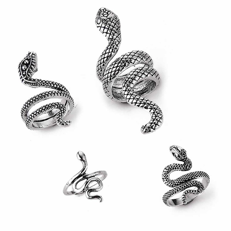 Danshinbow 4 pieces ring opened the snake made the snake makes the ring the goth bands have made a ring with your fingers and then the jewels for women and girls, Metal, No Gemstone