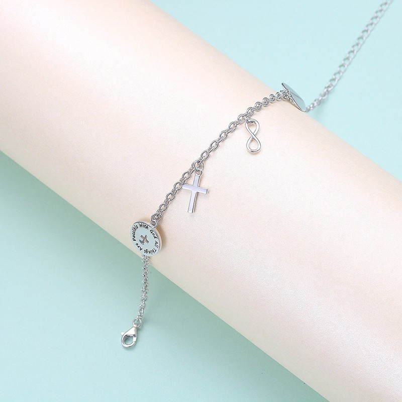 DAOCHONG S925 Sterling Silver With God All Things are Possible Infinity Cross Love Heart Adjustable Bracelet Link 7 to 9 inches