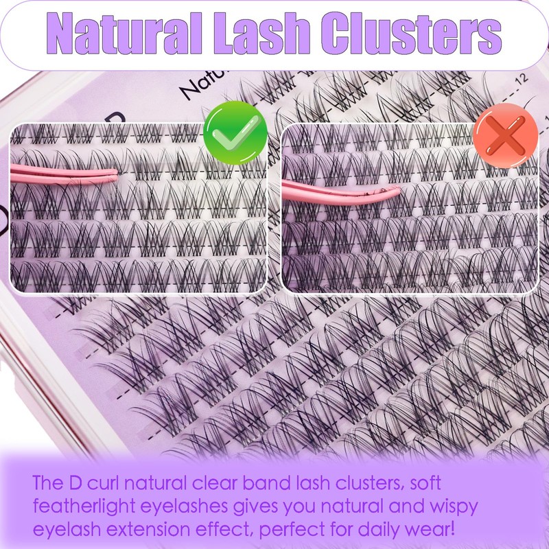 - Reusable & Invisible Clear Band: Handcrafted with ultra thin clear lash band, DAODER natural cluster eyelash extension is softer, thinner and lighter, it is barely to feel its weight; the invisible clear lash band make eyelash clusters blend seamless with natural lashes, super natural look, perfect for daily wear