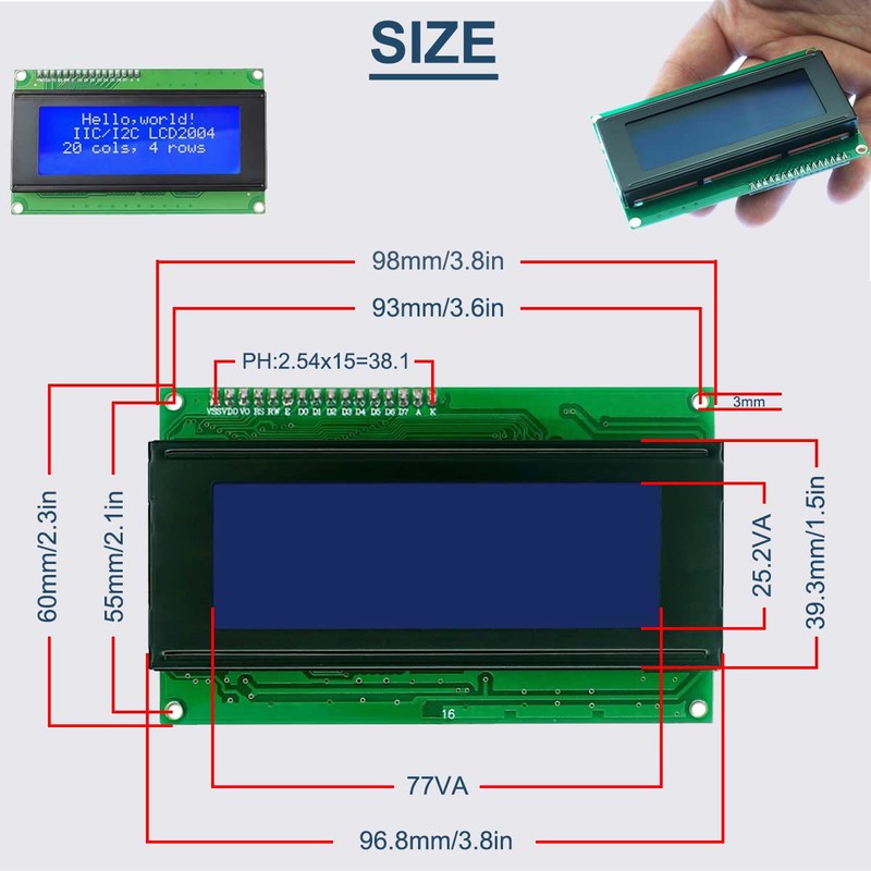 - Module: 2004A LCD Screen 20X4 2004 Letter Display LCD Module 204A LCD/LCM Blue Screen 5V Attachment Test Code Link: http://bit.ly/3Tpr1xf