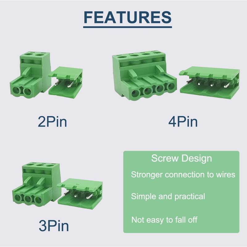• Package included: You will get 10 x 2-Pin Screw Terminal Block, 10 x 3-Pin Screw Terminal Block, 10 x 4-Pin Screw Terminal Block, 1 x Phillips Screwdriver