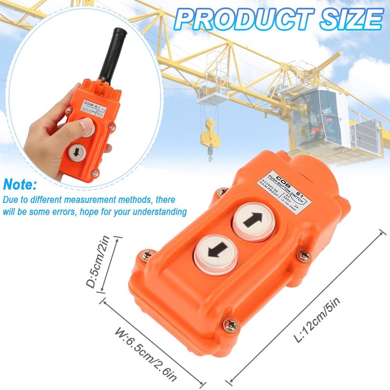 - Efficient Operation: The hoist control switch features momentary push buttons for up and down functions, providing precise and responsive control.