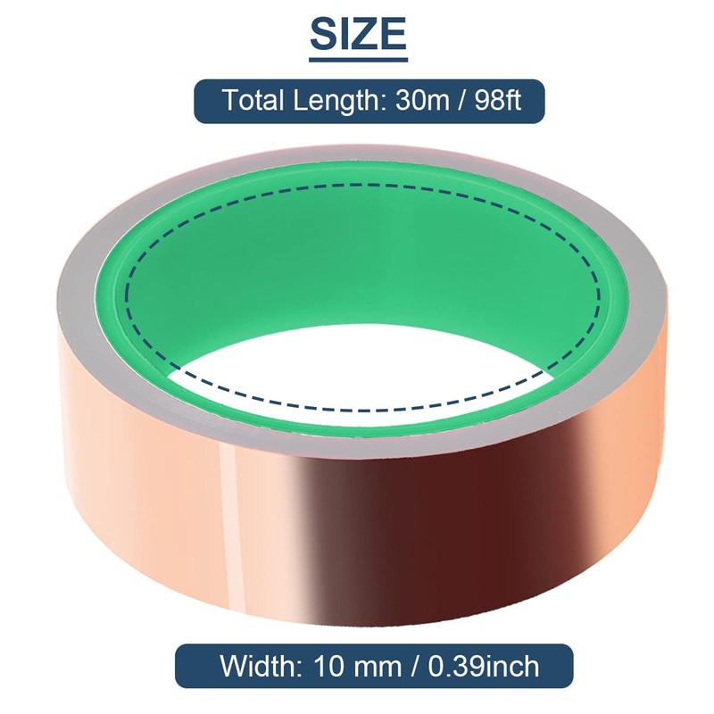 - Package Content: The package comes with 1 x Double-Sided Conductive Copper Foil Tape (30mm x 30m)