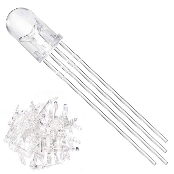 DAOKI 100Pack 5mm LED Light Emitting Diode Common Cathode 4Pin RGB Tri-Color(Red/Green/Blue) Clear Transparent Round LED Lamps Buld for Arduino, PCB